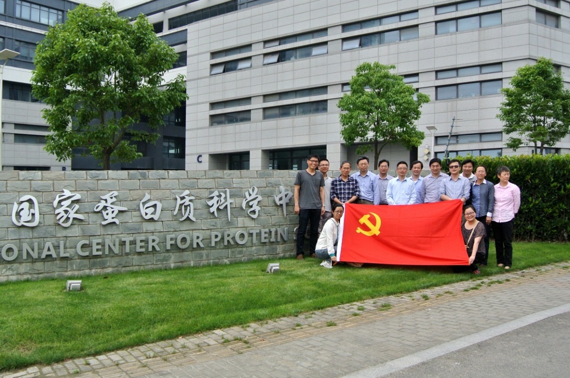 据国家蛋白质中心项目部的汪利俊博士介绍,该中心于2015年7月正式开放,拥有世界一流的蛋白质科学研究平台,中心开放后取得了丰硕的成绩,仅今年上半年在《自然》《科学》《细胞》这三种国际顶级学术刊物上就一连发表了8篇论文。汪博士等仪器负责人还详细介绍了中心的各种“利器”,每天克隆1000个基因的克隆自动化装置和规模化的蛋白质制备系统、包括布鲁900兆和安捷伦800兆在内的蛋白质核磁共振分析系统、FEI低温冷冻透射电子显微镜、超高分辨率和高准确性的质谱鉴定平台和位于一公里外位于上海光源的6个光束站等等。该中心国际一流的先进设备和振奋人心的顶级成果极大激发了广大支部成员的兴趣,并引发了对于大家对于科研创新的思考。许建和教授鼓励广大青年党员要面向国际科学前沿,善于开展合作研究,为国重室创建国际一流实验室发挥党员的先锋作用。