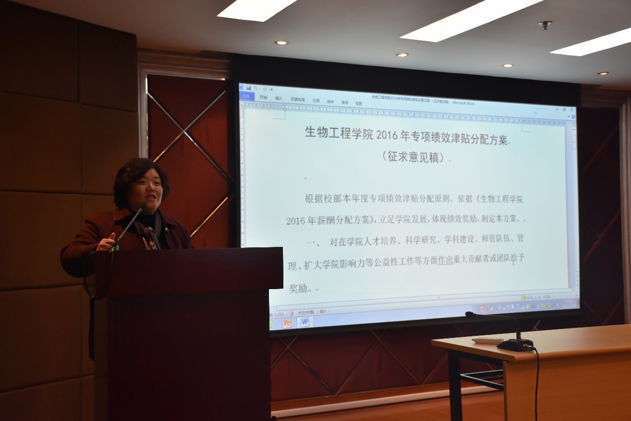 2016年11月29日,学院在实验18楼召开学院教代会代表会议,通报并讨论《yl8858永利集团2016年专项绩效津贴分配方案》(征求意见稿)(以下简称《专项津贴分配方案》)。30多位代表到场,工会主席蔡海波主持会议,学院党委书记陆兵、院长庄英萍到场并解释《专项津贴分配方案》。