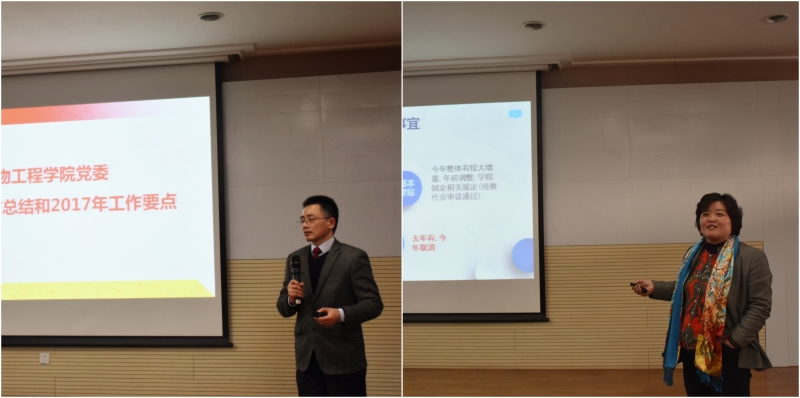 庄英萍院长从国家重点实验室评估、工程教育专业认证、人才培养、师资队伍、科学研究、国际交流与合作及学院经费收支等方面,对2016年我院各项事业的发展进行回顾,并对2017年需要展开的工作进行了部署。在肯定学院在工程教育专业认证、科研基地建设以及人才培养和人才引进等方面作出成绩的基础上,通过对照我院“十三五”规划纲要各项指标查找不足,强调学院在2017年将继续加强人才和创新团队的培养及引进工作,国际化工作仍需提升,学科建设和科研工作任务艰巨,并对学院资源整合工作提出了初步设想。