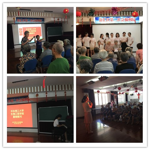 为了积极开展我院党支部志愿服务社会的活动,7月11日上午,学院院办教工党支部和联合二支部党员来到徐汇区第二社会福利院,为福利院老人们献上了一台主题为“情暖夕阳,关爱老年”的慰问演出,为他们晚年孤寂的精神世界献上一份关爱。