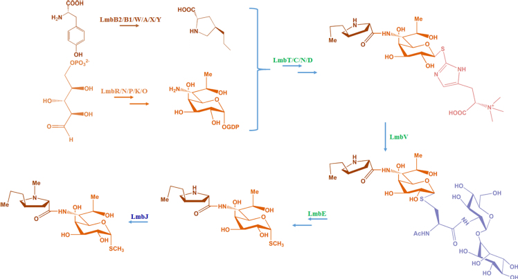 Hou B, Lin Y, Wu H, et al. The novel transcriptional regulator LmbU promotes lincomycin biosynthesis through regulating expression of its target genes in Streptomyces lincolnensis[J]. Journal of Bacteriology, 2018, 200(2): e00447-17.