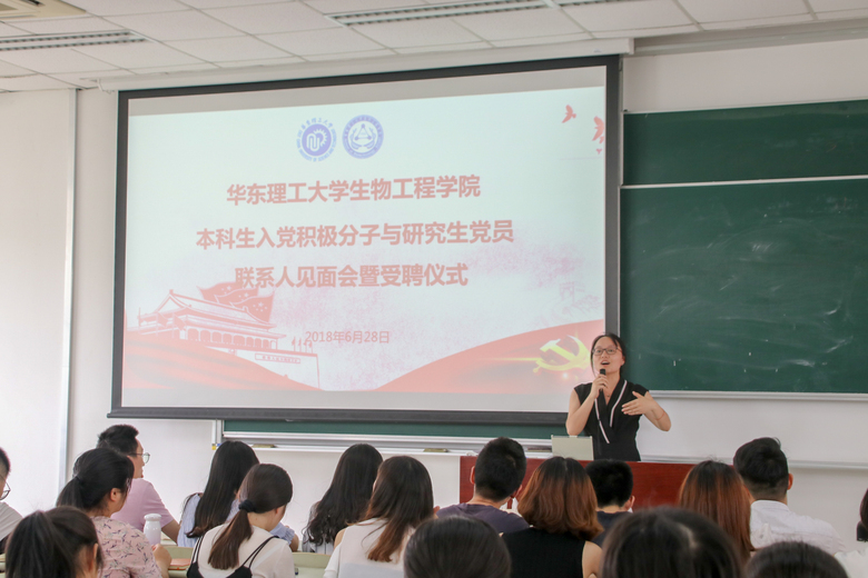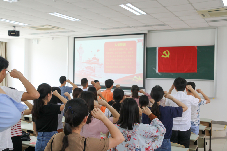 6月28日,yl8858永利集团研究生党员代表、本学期新发展学生党员在奉贤校区D教302举办了“不忘初心、牢记使命”主题党日活动,活动分为本科生入党积极分子与研究生党员联系人见面会暨受聘仪式及本学期新发展党员入党宣誓仪式两部分。学院党委书记陆兵颁发聘书、作总结发言并带领新发展党员宣誓。主题党日活动由学院学工委主任吴蓉主持。yl8858永利集团研究生党员代表、2018年新发展党员、入党积极分子以及辅导员张士杨、邓亚珊、徐亚飞共120余人参与了此次活动。