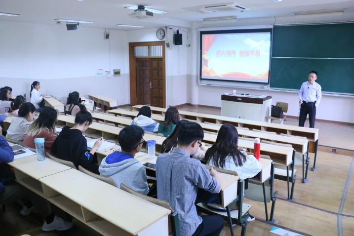 10月24日下午,我院在四教举行研究生新生党员教育交流会。党委书记陆兵以“薪火相传,自强不息”为主题,为18级新生党员和入党申请人上了一堂精彩的党课。