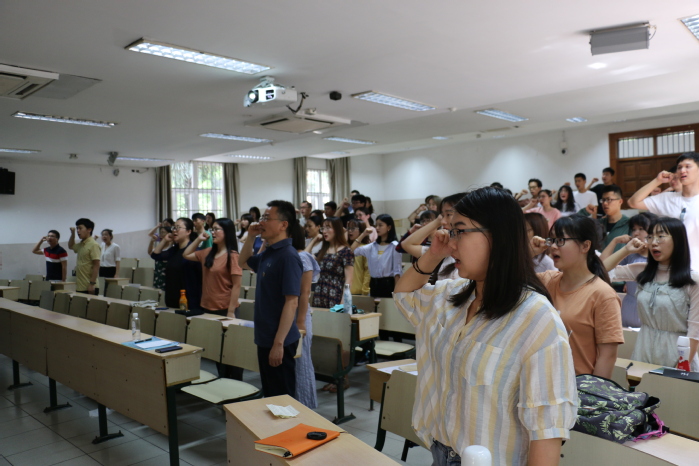 624日,学院举行了2019届毕业生党员离校教育活动。此次活动由毕业班辅导员邓亚珊主持,学院党委书记陆兵、研究生辅导员孙希彤以及全体毕业生党员参加。活动共分为五个部分,分别是党课主题教育、重温入党誓词、党员代表发言、合影留念、组织关系转移办理。