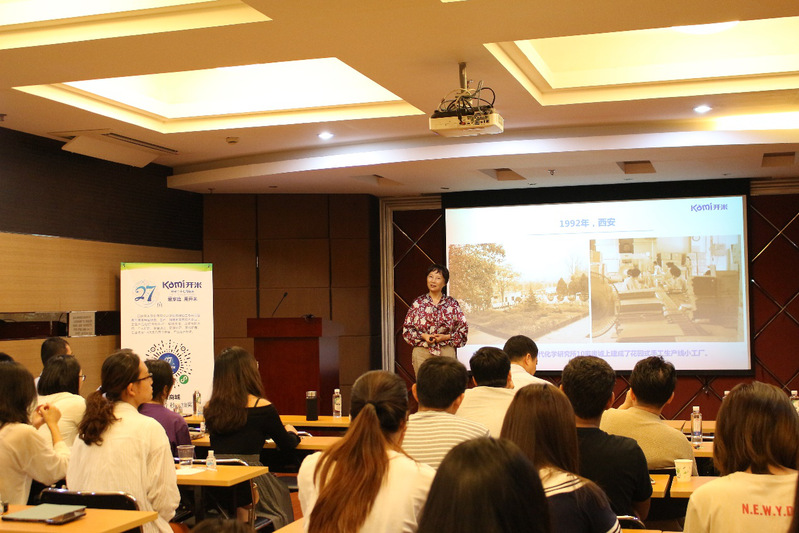 于文董事长向我们介绍了开米公司的创办史、发展史以及三个“第一瓶”产品——浓缩洗衣液、蔬果清洗剂和洗手液的诞生故事。27年来,于文董事长始终坚持战斗在研发、生产的第一线,她所创建的“开米”已成为“绿色环保、专业健康”民族洗涤品牌的标志性代表。