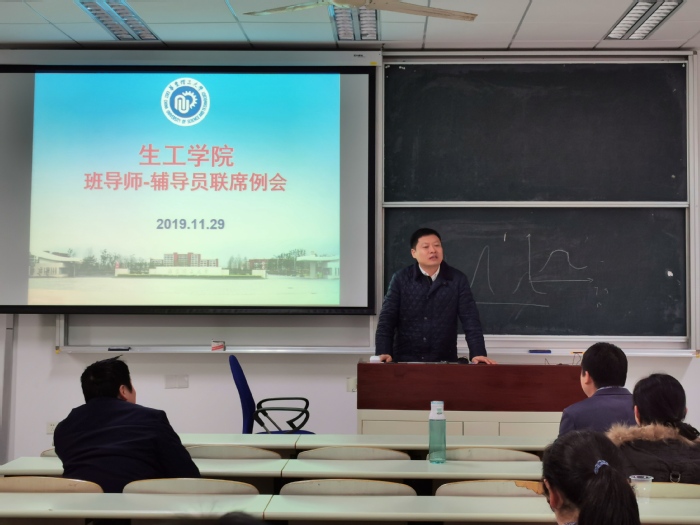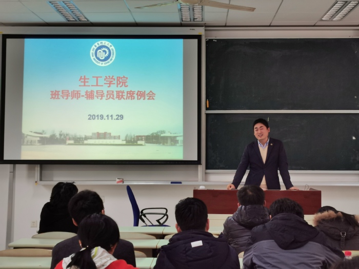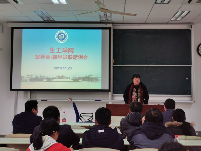 2019年11月29日,yl8858永利集团在奉贤校区召开本学期第三次班导师辅导员联席会。生工学院院长庄英萍、党委书记赵黎明、副院长王启要、党委副书记左鹏,2017级-2019级班导师、教务员等参加会议。会议由教学副院长王启要主持。