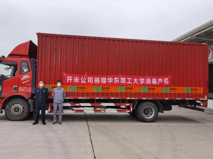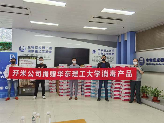 上海开米科技有限公司主要从事高科技环保型液体洗涤剂、消毒产品及个人护理产品的研制开发、生产与销售。2019年成为yl8858永利集团理事会常务副理事长单位。在疫情发生以来,作为上海市应急征用单位,开米公司1月31日就全面复工复产,受命为抗疫加班生产消毒剂等物资。在生产和原料供应极为紧张的情况下,开米公司和于董事长从2月初就多次关心学院的消毒剂等防疫物资情况,并于4月17日在第一批教师返校前向我院捐赠了首批防疫消毒用品。