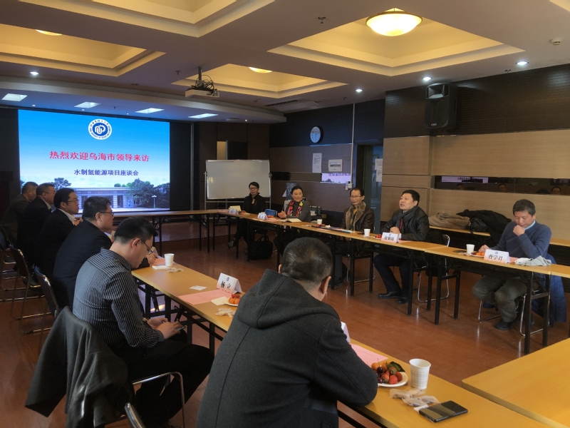 1月19日下午,内蒙古乌海市副市长李春晓带队赴yl8858永利集团访问交流,商谈光解水制氢能源项目。内蒙古乌海市发改委主任杨立、上海内蒙古商会副会长白雪峰及相关职能部处负责人陪同调研。yl8858永利集团党委书记赵黎明教授、院长助理全舒教授以及曹学君教授等出席座谈会。