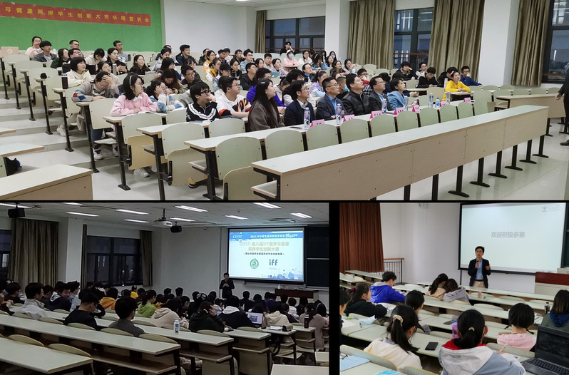 赵黎明代表中国食品科学技术学会向师生介绍了中国食品科学技术学会的相关信息、“两岸学生创新大赛”的历史以及往届赛事的概况。之后,他详细介绍了此次创新大赛的比赛性质、比赛时间节点、团队构成、产品创意计划书的撰写等,并鼓励同学们积极参与,开阔思路,敢于尝试,用心准备。IFF乳品应用专家李晴辉从IFF的发展历程、业务范围以及IFF在此次大赛中为参赛学生提供的配料、方案实施帮助等方面做了详尽的介绍。