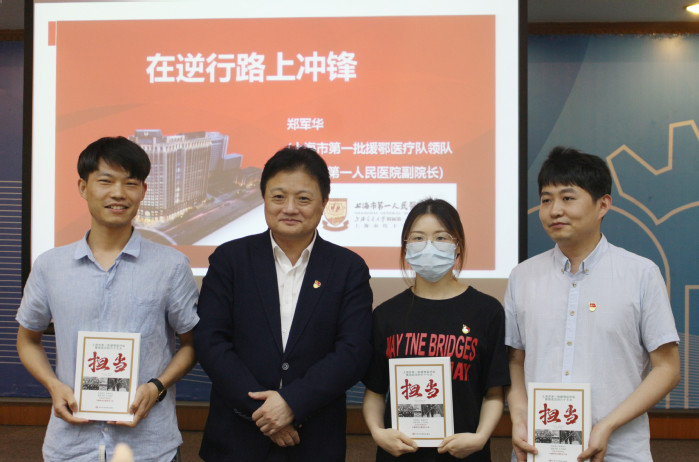 2021年5月12日下午,上海市第一批援鄂医疗队领队兼支部书记、上海市第一人民医院副院长郑军华教授莅临我校,在逸夫楼演讲厅给生工学院师生上了一堂主题为“在逆行路上冲锋——一线党组织政治引领凝心聚力,确保零感染完成使命”的生动党课。生工学院党委委员和29位教工及研究生党支部书记以及部分研究生代表参加了党课,党课由生工学院党委书记赵黎明教授主持。