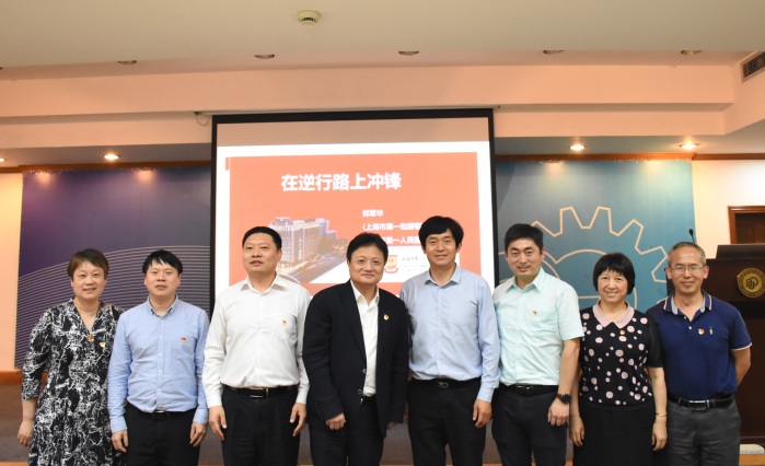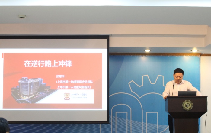 2021年5月12日下午,上海市第一批援鄂医疗队领队兼支部书记、上海市第一人民医院副院长郑军华教授莅临我校,在逸夫楼演讲厅给生工学院师生上了一堂主题为“在逆行路上冲锋——一线党组织政治引领凝心聚力,确保零感染完成使命”的生动党课。生工学院党委委员和29位教工及研究生党支部书记以及部分研究生代表参加了党课,党课由生工学院党委书记赵黎明教授主持。