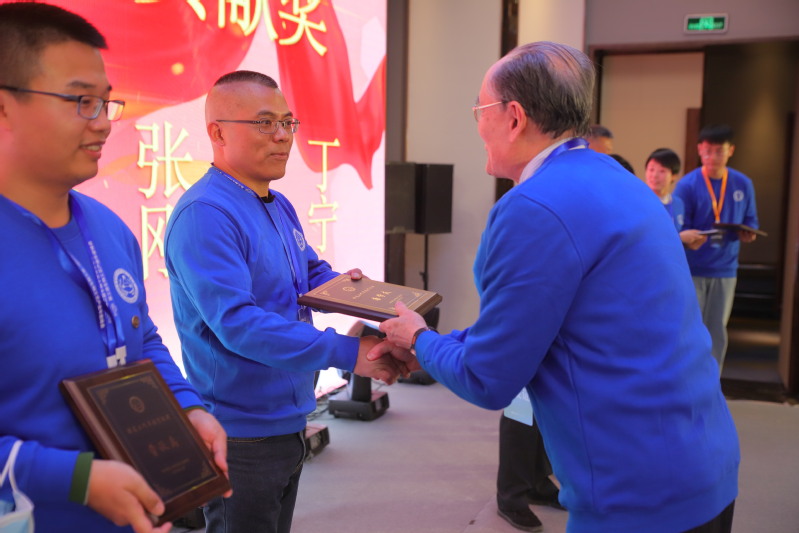 图片说明:唐学友接受范瑾前辈的颁奖
