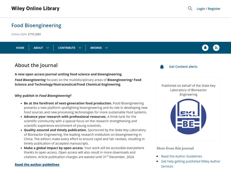 由我校生物反应器工程国家重点实验室主办的英文新刊《Food Bioengineering》网站和投稿系统已正式上线!