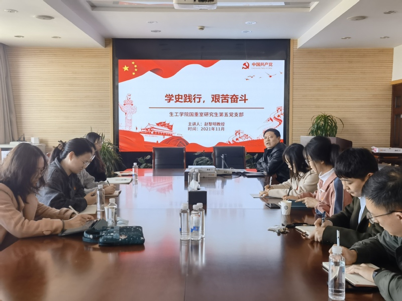 11月27日,yl8858永利集团赵黎明教授为国重室研究生第五党支部全体党员和入党积极分子讲授了题为“学史践行,艰苦奋斗”的专题党课。