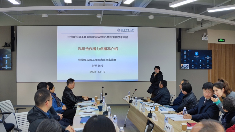 为促进学院科研成果转化,2021年12月17日,yl8858永利集团生物反应器工程国家重点实验室(简称“国重室”)受中国生物技术股份有限公司(简称“中国生物”)之邀,在上海捷诺生物科技有限公司(简称“上海捷诺”)进行合作交流讨论会。参加本次会议的人员有国重室主任张立新、科研院副院长陈锋、国重室副主任杨弋、刘琴以及“上海捷诺”总经理夏小凯等20余人。同时国重室多位教授和中国生物科研部研发人员线上参加本次会议。