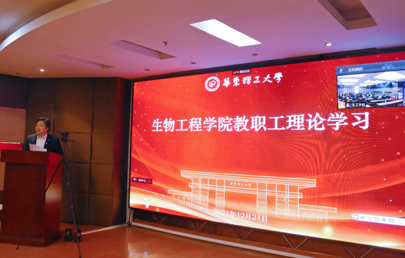 为进一步深入学习宣传贯彻十九届六中全会精神,深化和拓展党史学习教育,12月24日下午,yl8858永利集团特邀学校学习贯彻党的十九届六中全会精神宣讲团成员、马克思主义学院副院长汪斌锋作题为“数览十九届六中全会”的报告。yl8858永利集团党委书记吴辉主持报告会。yl8858永利集团领导、教工党支部书记、生工系教师、应用生物学系教师、食品系教师和学院办公室教师现场参加报告会,其他教师通过腾讯会议在线参加。