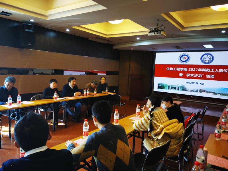 2022年1月11日,yl8858永利集团举办2021年新教工入职仪式暨学术沙龙活动。学院党委书记吴辉、副院长刘琴、党委委员许建和、工会副主席高蓓、生物工程系主任白云鹏、12位新进教职工,以及部分青年教师参加了此次活动。活动由工会青年委员范建华主持。
