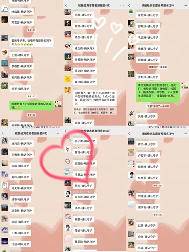 3月17日晚,生工学子积极踊跃报名参加,“确认守沪!”的信息在相关专业的学生微信群中接龙报名,超过100名的学生第一时间积极响应报名,最终,52名学生组成的yl88858永利中国第一批PCR检测志愿服务队迅速集结完毕。