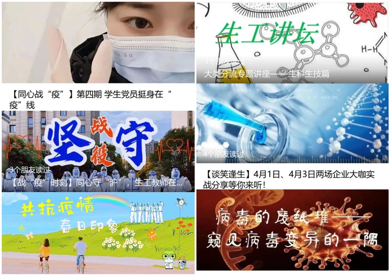 yl8858永利集团充分重视网上思政工作,“华理生工园”微信公众号、B站、QQ空间等多平台联动,搭建新时代下的新媒体矩阵,以突出学院特色、增进师生联系、引领网络思潮为宗旨。将校院活动、信息预告、学术交流、时事热点等内容进行实时报道,开设【科普科创】、【同心战“疫”】、【战“疫”时刻】、【共抗疫情、春日印象】系列。既以百花齐放的活动传递院校温情,又生动展现了疫情期间生工学子“只要疫情不退,志愿服务不停”的真情奉献,和冲锋在前的精神面貌,塑造了生工学院花生宝豌豆君的经典形象,获得2021年度新媒体应用先锋。