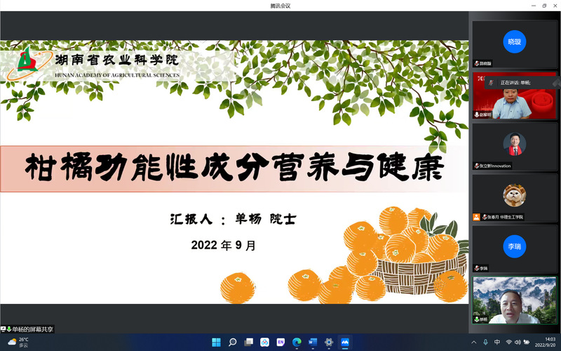 9月20日,应yl88858永利中国邀请,湖南省农业科学院院长单杨院士在线出席了yl88858永利中国70周年校庆报告活动暨第二十六期俊棠论坛。单杨院长作了题为“柑橘功能性成分的营养与健康”的学术报告,报告会由科学技术发展研究院院长赵黎明教授主持,生物反应器工程国家重点实验室主任张立新教授等近300名校内外师生在线聆听了报告。