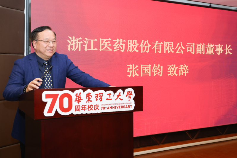 阎海峰代表学校对浙江医药股份有限公司和张国钧校友个人慷慨捐赠表达了衷心的感谢。他表示,生物医药产业是上海“中国制造2025”和战略性新兴产业的重点发展领域,国家正加快发展生物医药产业,做大做强生物经济。今天到会的yl8858永利集团老师和同学,要抓住生物医药大发展的这个机遇,肩负起“健康中国2030”的伟大使命,贡献磅礴的青春力量。同时,他也对浙江医药在产业升级、人才培养、科技创新等方面作出的杰出贡献表示敬意。