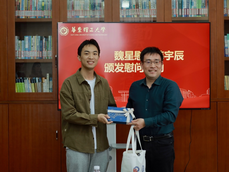 图片说明:魏星慰问韩宇辰并颁发慰问纪念品