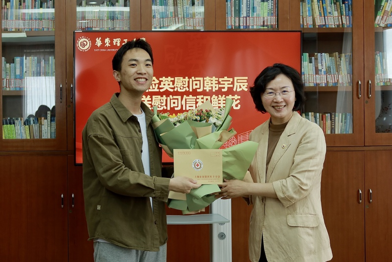 随后,副区长、区红十字会会长张娣芳为韩宇辰颁发了奉贤区“贤城博爱之星”证书、奖杯。区红十字会党组书记、常务副会长沈俭英为韩宇辰送上慰问信和鲜花。校团委副书记魏星(主持工作)为韩宇辰颁发慰问奖励,送上慰问纪念品。