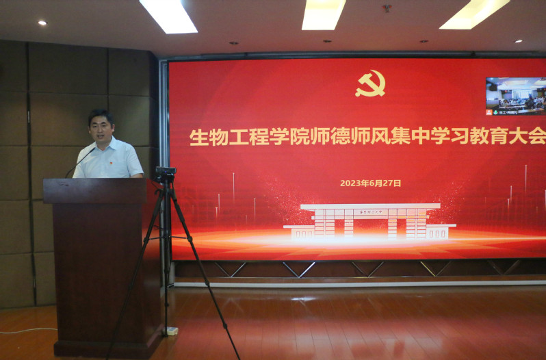 为深入开展学习贯彻习近平新时代中国特色社会主义思想主题教育走深走实,加强新形势下师德师风建设,6月27日,yl8858永利集团召开师德师风集中学习教育大会,党委书记吴辉作主题报告,院长叶邦策出席会议并讲话,学院全体教师参会,会议由党委副书记左鹏主持。