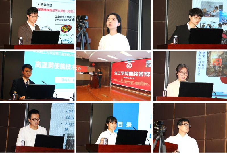 本次答辩会分为博士和硕士两个半场进行,上半场博士答辩主要以科研能力、学术造诣作为评定基础,参考候选人思想先进性、社会工作能力和现场表现进行等级评分。下半场硕士答辩评分以学习成绩和科研情况两项作为评定基础,结合候选人社会实践、综合素质及现场表现进行百分制打分,并去掉最高最低后取得分平均值。答辩会上,候选人依次进行了自我展示,展现了生工学子的科研精神、公益热情和使命担当。
