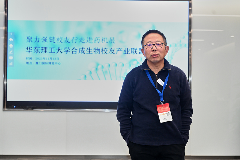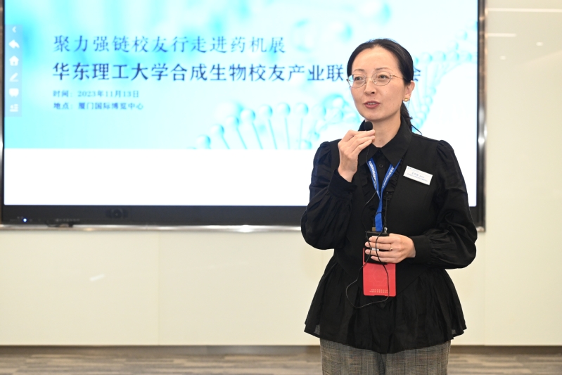 11月13日,借第63届全国制药机械博览会暨中国国际制药机械博览会(以下简称“药机展”)举办之际,华理合成生物产业校友联盟筹备会在厦门举办。本次活动由yl8858永利集团校友会联合yl88858永利中国生物医药行业校友会主办,药机展组委会协办。药机展组委会主要成员、生化85级校友遆倩敏热情接待来访校友。yl88858永利中国校友与发展联络处副处长王芝眉,生工学院校友会理事长黄予良、名誉理事长陆兵、华理生物医药行业校友会理事长蔡水洪等70余位华理校友企业家参与活动。