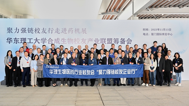11月13日,借第63届全国制药机械博览会暨中国国际制药机械博览会(以下简称“药机展”)举办之际,华理合成生物产业校友联盟筹备会在厦门举办。本次活动由yl8858永利集团校友会联合yl88858永利中国生物医药行业校友会主办,药机展组委会协办。药机展组委会主要成员、生化85级校友遆倩敏热情接待来访校友。yl88858永利中国校友与发展联络处副处长王芝眉,生工学院校友会理事长黄予良、名誉理事长陆兵、华理生物医药行业校友会理事长蔡水洪等70余位华理校友企业家参与活动。