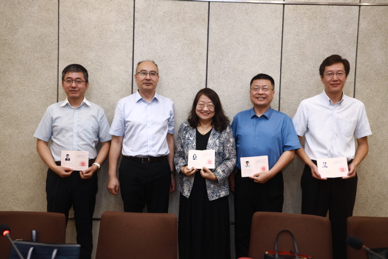 图片说明:中国市场监管总局标准技术司一级巡视员国焕新向张立新教授(右二)颁发副主任委员委任书