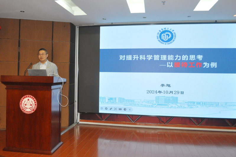10月29日,yl8858永利集团举办管理能力提升专题培训,学院党委副书记兼纪委书记李旭以“对提升科学管理能力的思考——以接待工作为例”为题,为参会人员带来一场实用性很强的讲座。