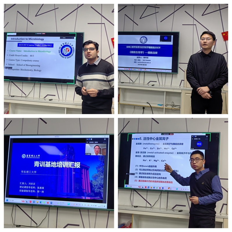 1月22日下午,yl8858永利集团教师教学能力培训分基地(以下简称“生工分基地”)在实验十八楼301举行青年教师出站考核。张江树教学名师张惠展教授和蔡海波教授、第六届上海高校青教赛二等奖获得者周勉教授担任考核评委,基地4位青年教师参加了本次考核,在站青年教师到场观摩学习。