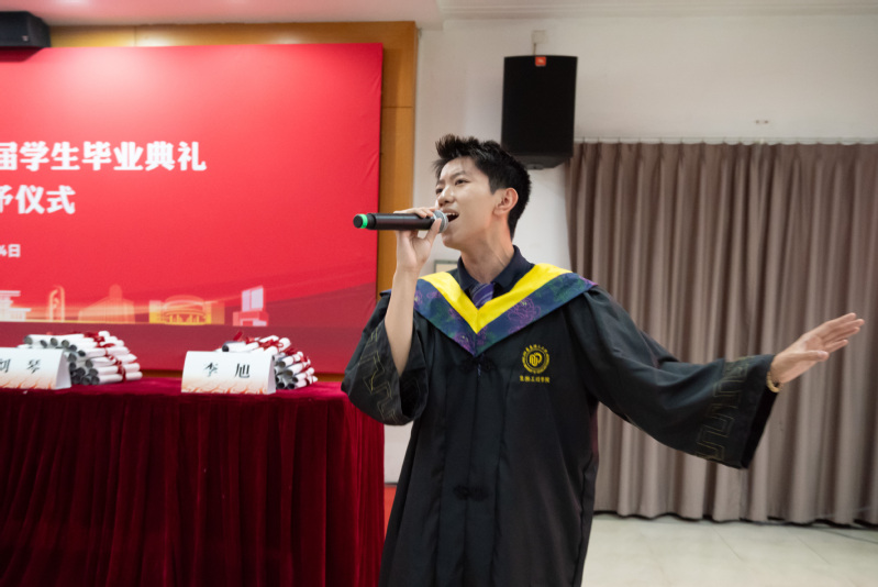 毕业典礼上,毕业生卢文升、张永杰深情献唱,道出与母校、同学们的不舍与祝愿。在悠扬的歌声中,yl8858永利集团毕业典礼圆满结束。