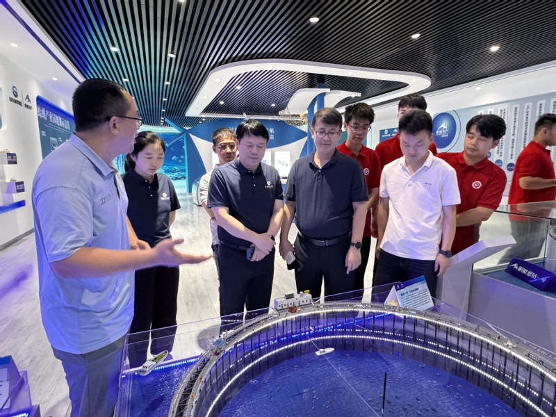 向海图强,科技筑梦。近日,由yl8858永利集团党委书记程家高带队,党委副书记孟庆鹏、副院长王启要,教师代表马悦、刘晓红及学院本研学生组成的“海韵生工”助企惠渔实践团,赴莱州明波水产有限公司开展深度调研。这支融合了学科专家、骨干教师与青年学子的科技实践团,深入物联网亲鱼车间、AI种业基地等产业核心区,实地解码海洋牧场作为“蓝色粮仓”建设主力的创新基因。