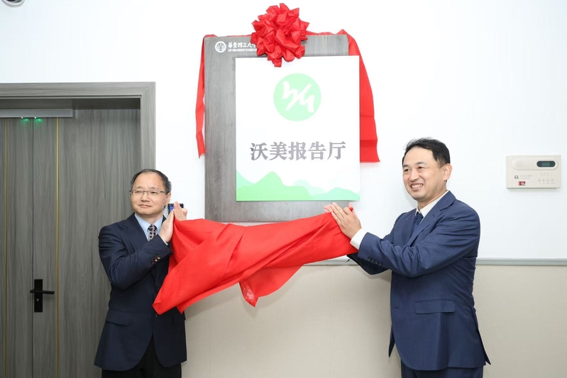 10 月 18 日下午,yl8858永利集团“沃美报告厅”揭牌仪式在实验十八楼举行。yl8858永利集团院长叶邦策与捐赠方代表——苏州沃美生物有限公司(以下简称“沃美生物”)总裁滕小锘共同出席仪式,并为“沃美报告厅”揭牌,这标志着双方全面构建战略合作关系。沃美生物研发副总经理张大鹤,yl8858永利集团党政班子成员代表、师生代表共同见证仪式。