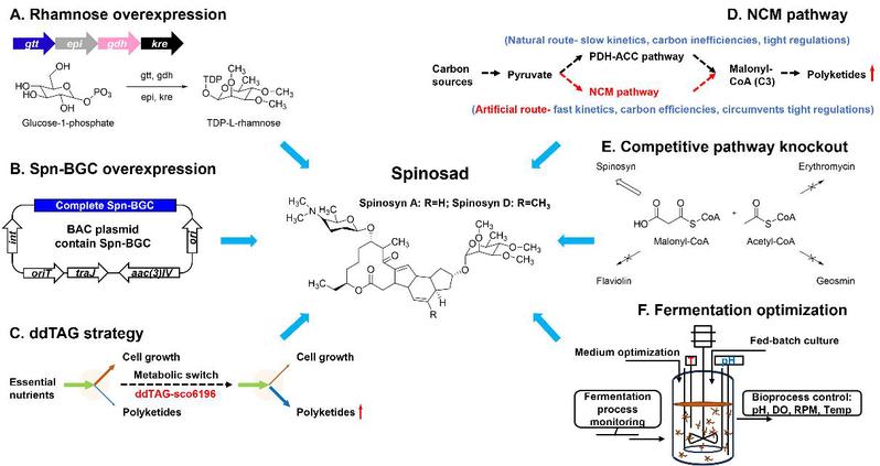 多杀菌素是一种由刺糖多孢菌(Saccharopolyspora spinosa)产生的广谱、低毒的大环内酯类化合物,在可持续农业中应用广泛。然而,由于其产生菌的遗传操作难度大、次级代谢调控网络复杂,传统育种与代谢工程手段难以实现产量的大幅提升,成为制约其生产成本与推广应用的关键瓶颈。