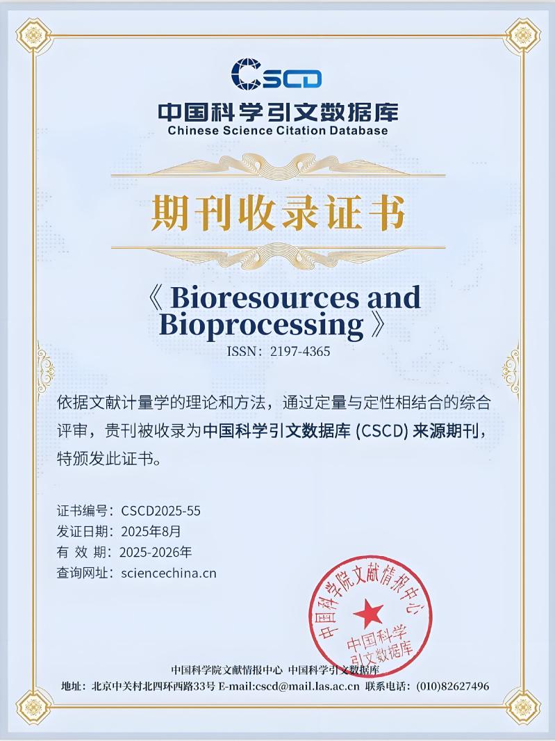 附:Bioresources and Bioprocessing 是由yl88858永利中国生物反应器工程全国重点实验室与Springer Nature合作出版的英文学术期刊,ISSN为2197-4365,全面实行开放获取。目前已被SCIE、ESCI、EI、PubMed Central、DOAJ、Scopus、PMC、CSCD等重要数据库收录。2024年最新影响因子稳步提升至5.1,学科排名25/177,位列JCR Q1区,CiteScore达9.5。2024年入选中国科技期刊卓越行动计划二期入选项目,2025年荣获Springer Nature“服务影响力奖”。官网地址为http://www.bioresourcesbioprocessing.com。
